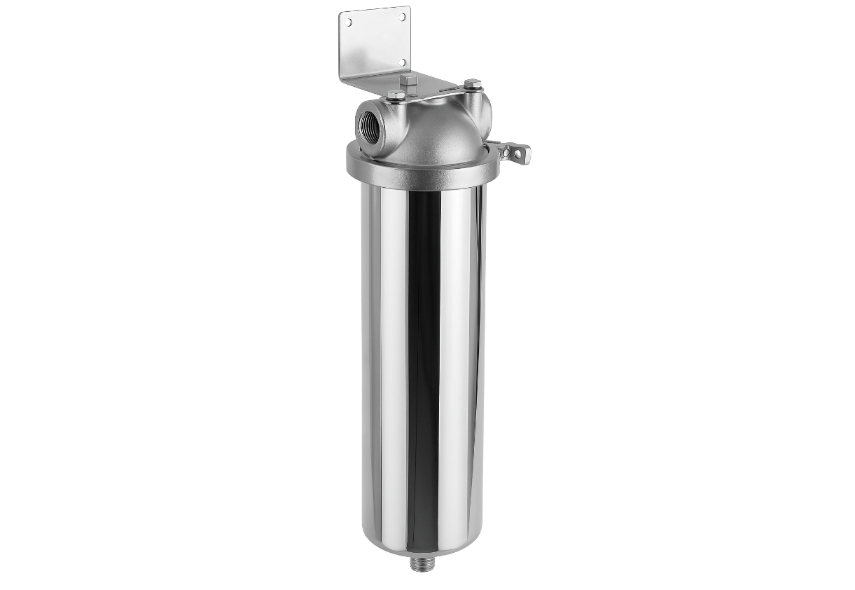 Корпус фильтра металлический стандарта SL-10" SUS 1/2" предназначен для осуществления процесса очистки воды или других жидкостей температурой до 80 °С в квартирах и на промышленных предприятиях.