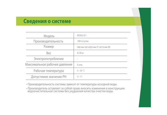*Производительность системы зависит от температуры исходной воды