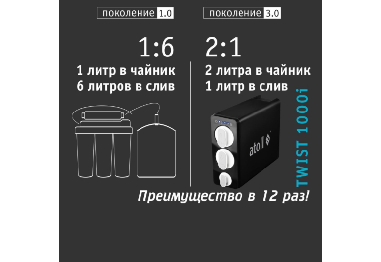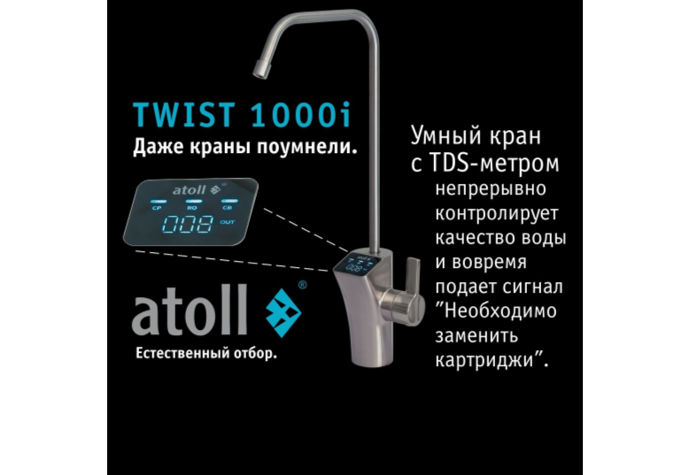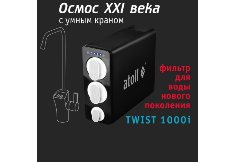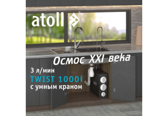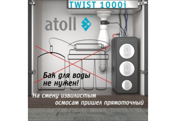Представляем вашему вниманию прямоточную систему обратного осмоса без накопительного бака atoll TWIST 1000i.