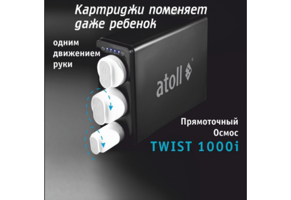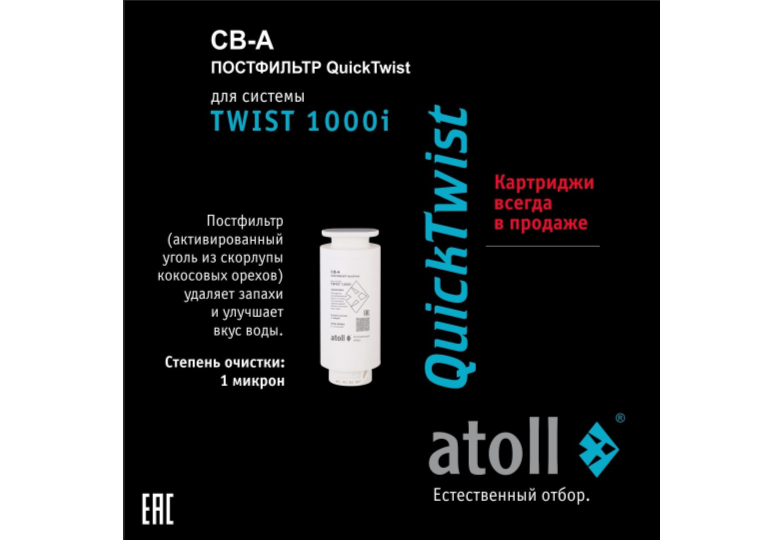 - Картридж atoll TWIST 1000 CB-A (постфильтр) - активированный уголь - удаляет запахи и улучшает вкус воды.